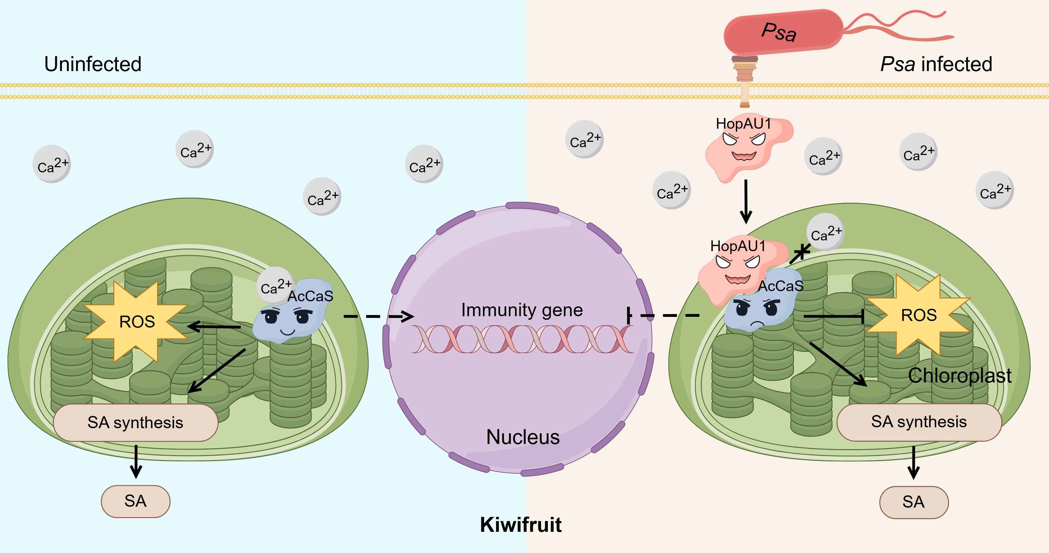 近日,成人色情 果树病害致灾机理及综合防控团队在Horticulture Research发表了题为“Calcium-sensing receptor AcCaS regulates chloroplast immunity in kiwifruit by comp...