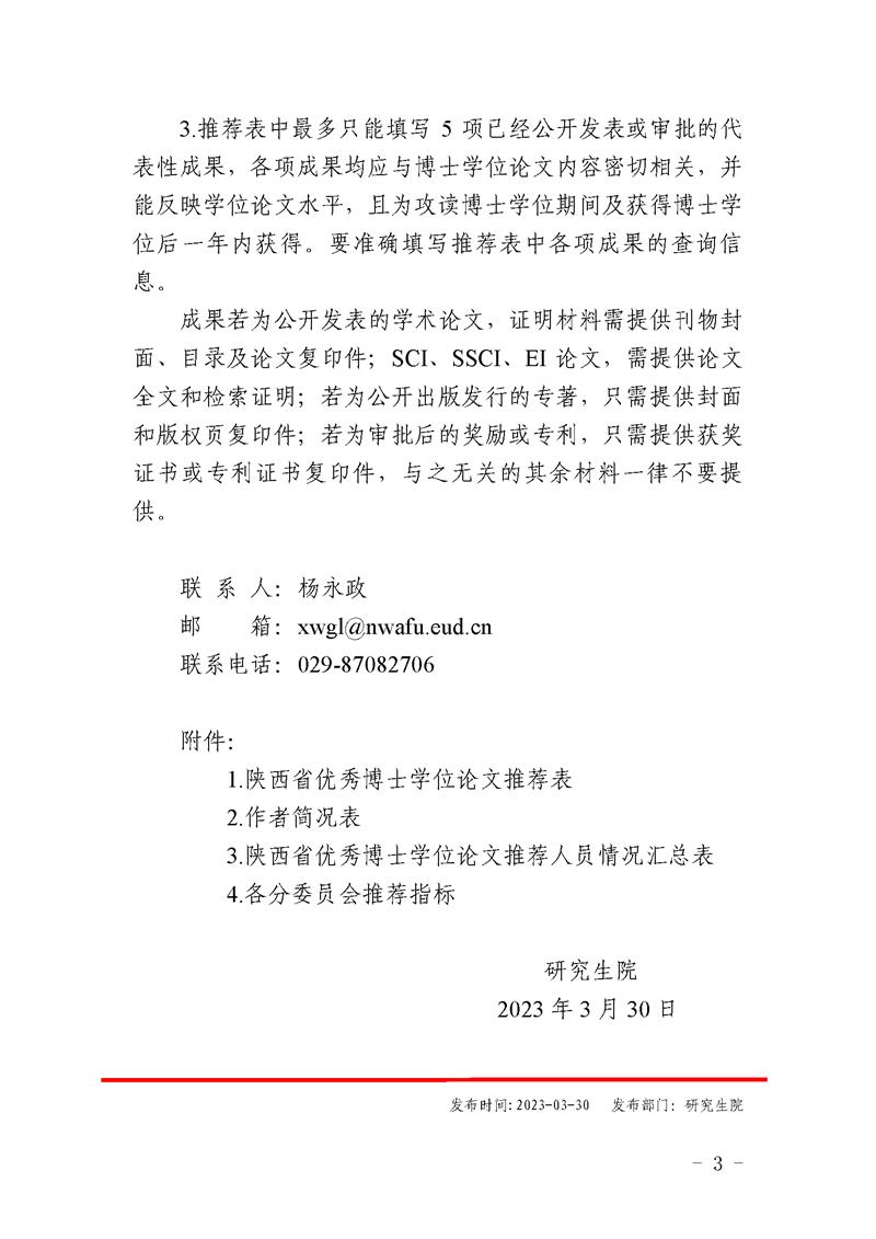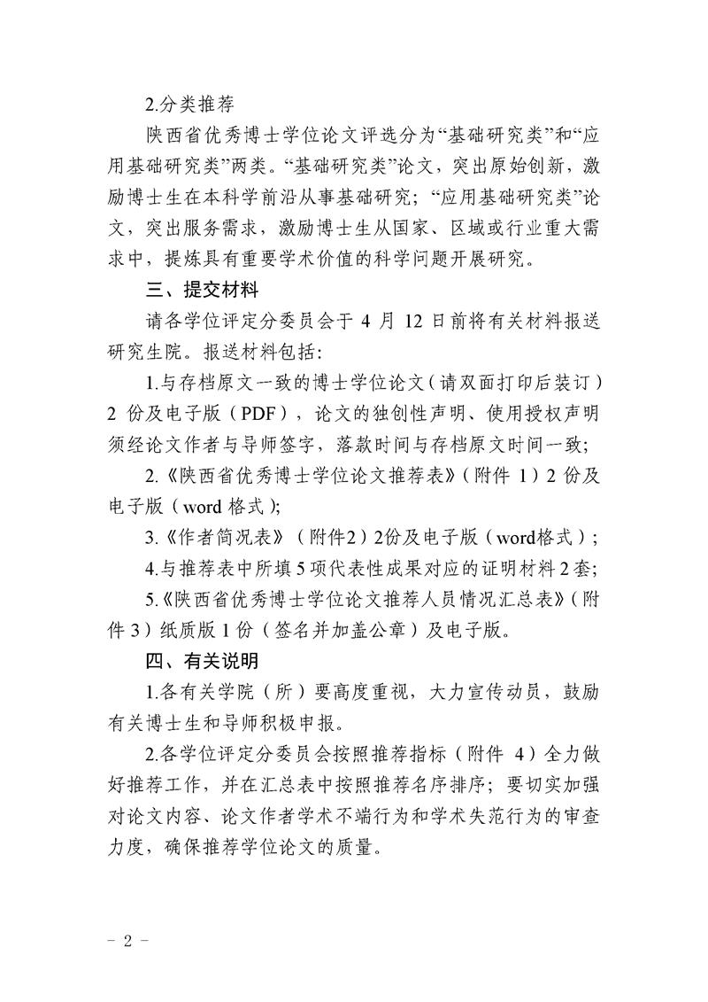 关于做好2023年陕西省优秀博士学位论文评选推荐工作的通知