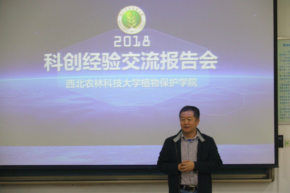 2018年4月8日晚7:30,由植保学院团工委科创部举办的科创经验交流报告会在8T08举行,本次报告会旨在为大一大二学生解答有关申请科创项目的疑惑。出席本次报告会的有植保学院副院长戴武教授、团工委书记高晴老师、2017级辅导员张楠老师、团工委副书记方晓武和优秀科创项目代表吕嘉诚。