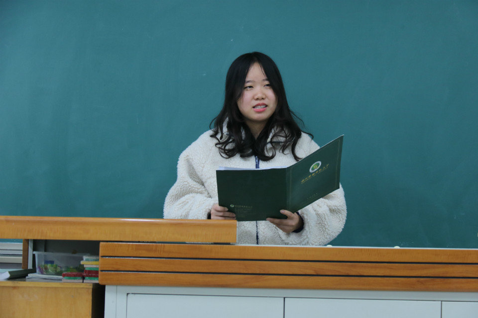 听完主持人深情澎湃的开场白,我们了解了交流会的主要流程。首先是张楠团工委书记致词,她提出了我们为什么要学习,在学习过程中了解是否有变得更成熟,这才是我们所需要的学习的目的与方法。她还详细指出了,班委成员应该团结一致,帮助同学一起建设良好班风。其次各班按照预先选定的顺序开始班风展示。