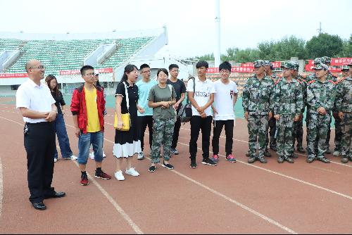 当日艳阳高照,植保新生们在田径场上进行军训汇演的彩排活动,同学们不惧骄阳烈日、声势浩大,颇有军人风范。各位院领导们欣慰的目睹了植保学子的飒爽风采,并在新生们休息间隙亲切地将其看望。